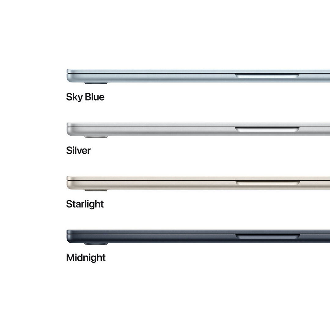 Un nuevo color en el horizonte. Con la llegada del hermoso azul cielo, ahora son cuatro los colores que te robarán el corazón. Y cada MacBook Air trae un cable de carga MagSafe del mismo color.