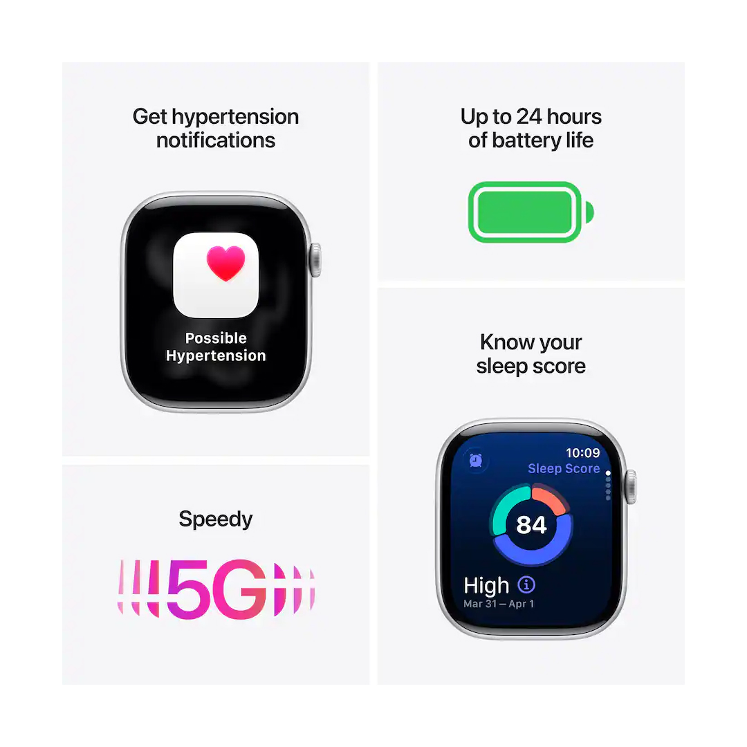 Mientras más datos tengas, más poder tienes para cuidarte. Desde la app ECG hasta la app Signos Vitales, el Apple Watch Series 11 te muestra un panorama más completo sobre tu salud para contar siempre con la información que necesites. Y ahora, el Series 11 da un gran salto en salud cardiaca con una innovadora funcionalidad: notificaciones de hipertensión.