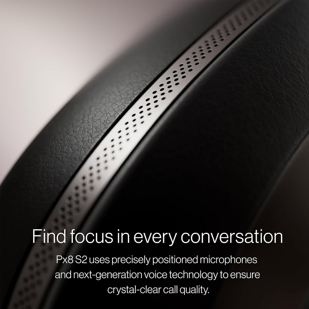 Un total de ocho micrófonos garantiza que Px8 S2 ofrezca una calidad de llamadas excelente junto con una cancelación de ruido sobresaliente. Esto bloquea las distracciones no deseadas sin afectar la dinámica ni la energía de la música.