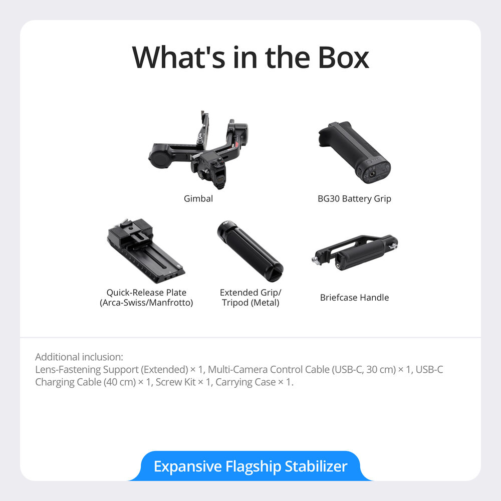 El estabilizador expansivo insignia DJI RS 4 Pro se integra a la perfección con el sistema de control de objetivos DJI Focus Pro, DJI Transmission y un amplio ecosistema de control. Esta sinergia ofrece a la industria televisiva y cinematográfica una solución para las producciones a gran escala que integra estabilización, transmisión, monitorización, enfoque y control. Amplía los horizontes de las posibilidades creativas para que los cineastas puedan aprovechar todo su potencial y demostrar su habilidad.