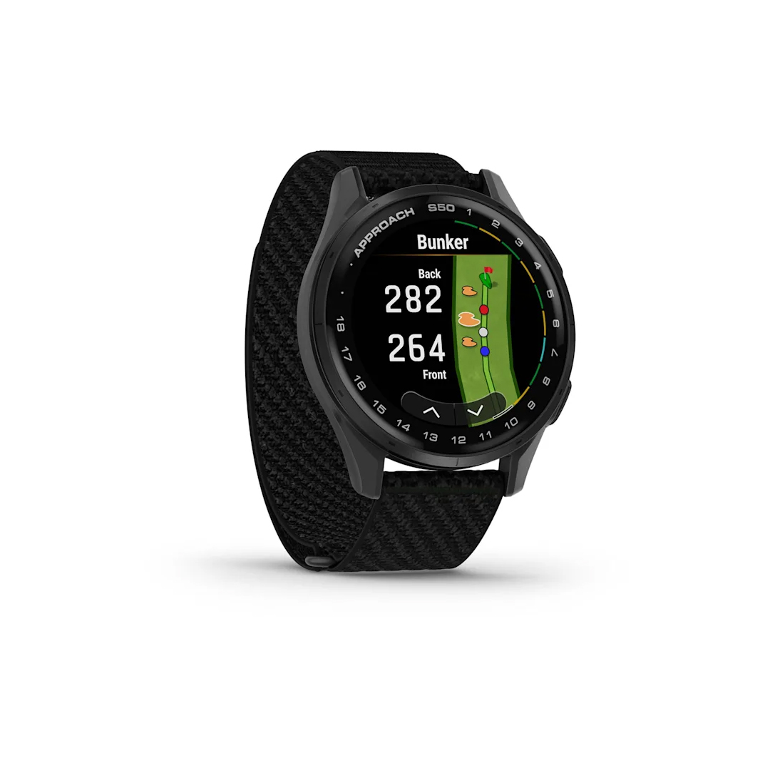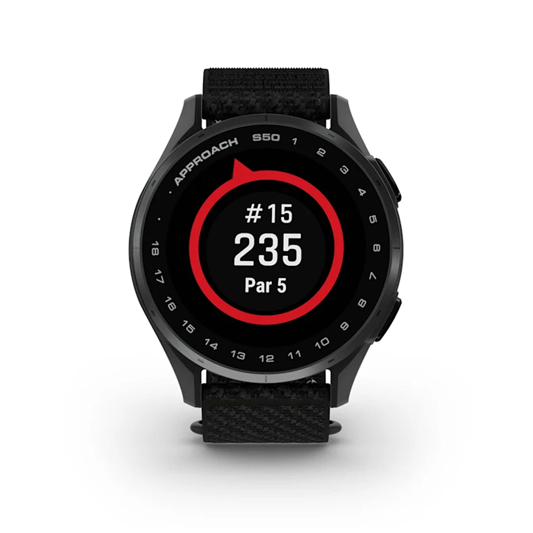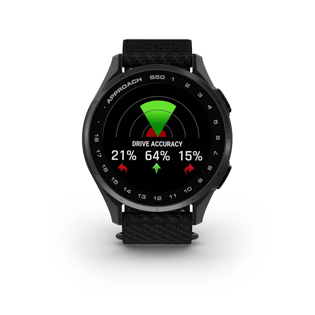 La impresionante pantalla táctil AMOLED de 1,2 pulgadas facilita la visualización de las distancias clave hasta el green, los obstáculos y las aproximaciones en más de 43.000 campos.