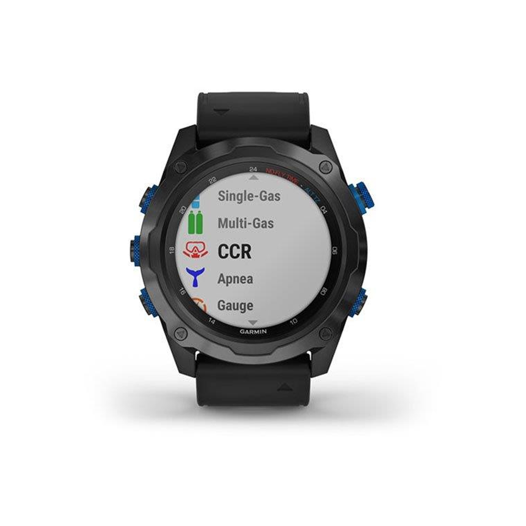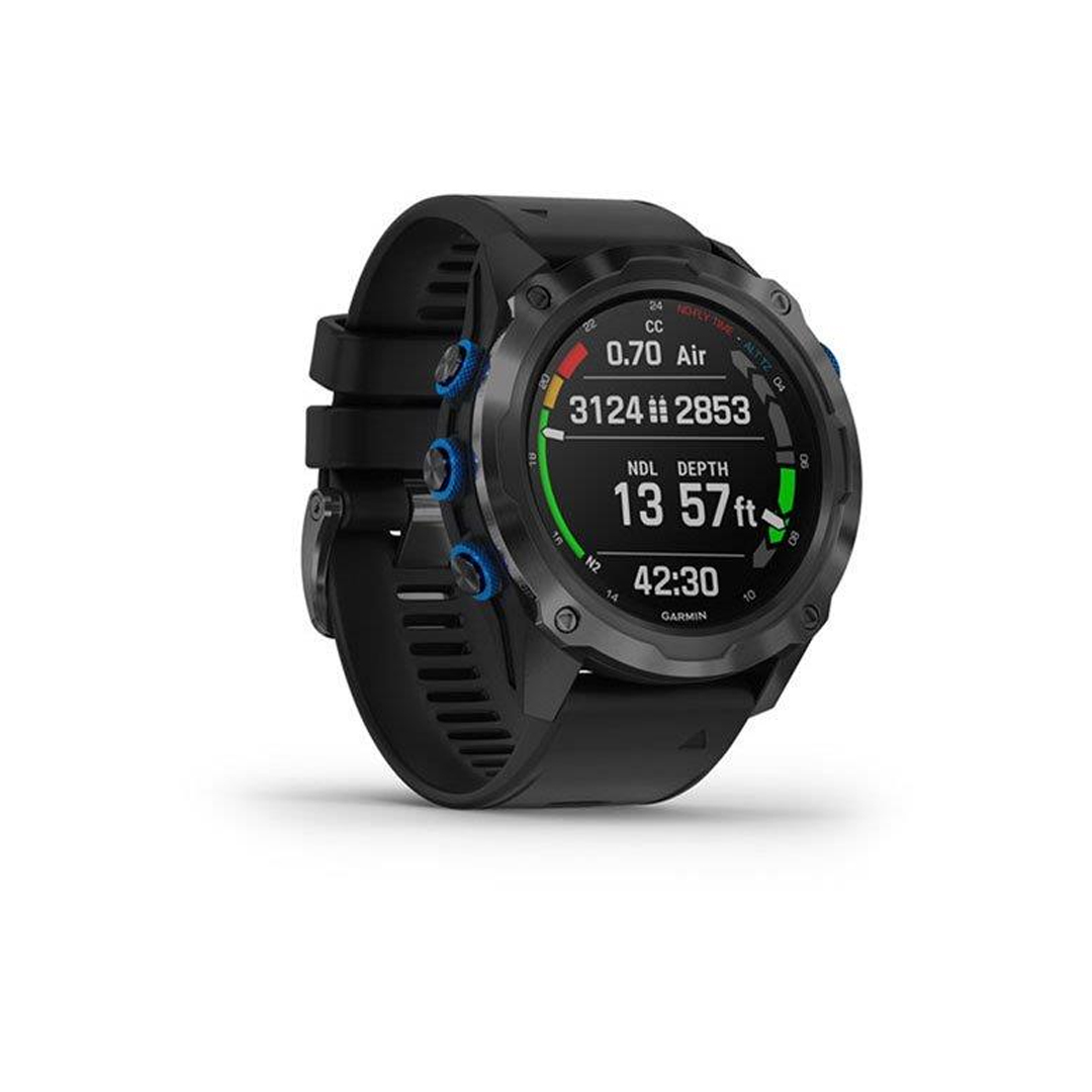 Controle su gas y su profundidad con la computadora de buceo avanzada tipo reloj que viene con entrenamiento multideporte y funciones inteligentes.