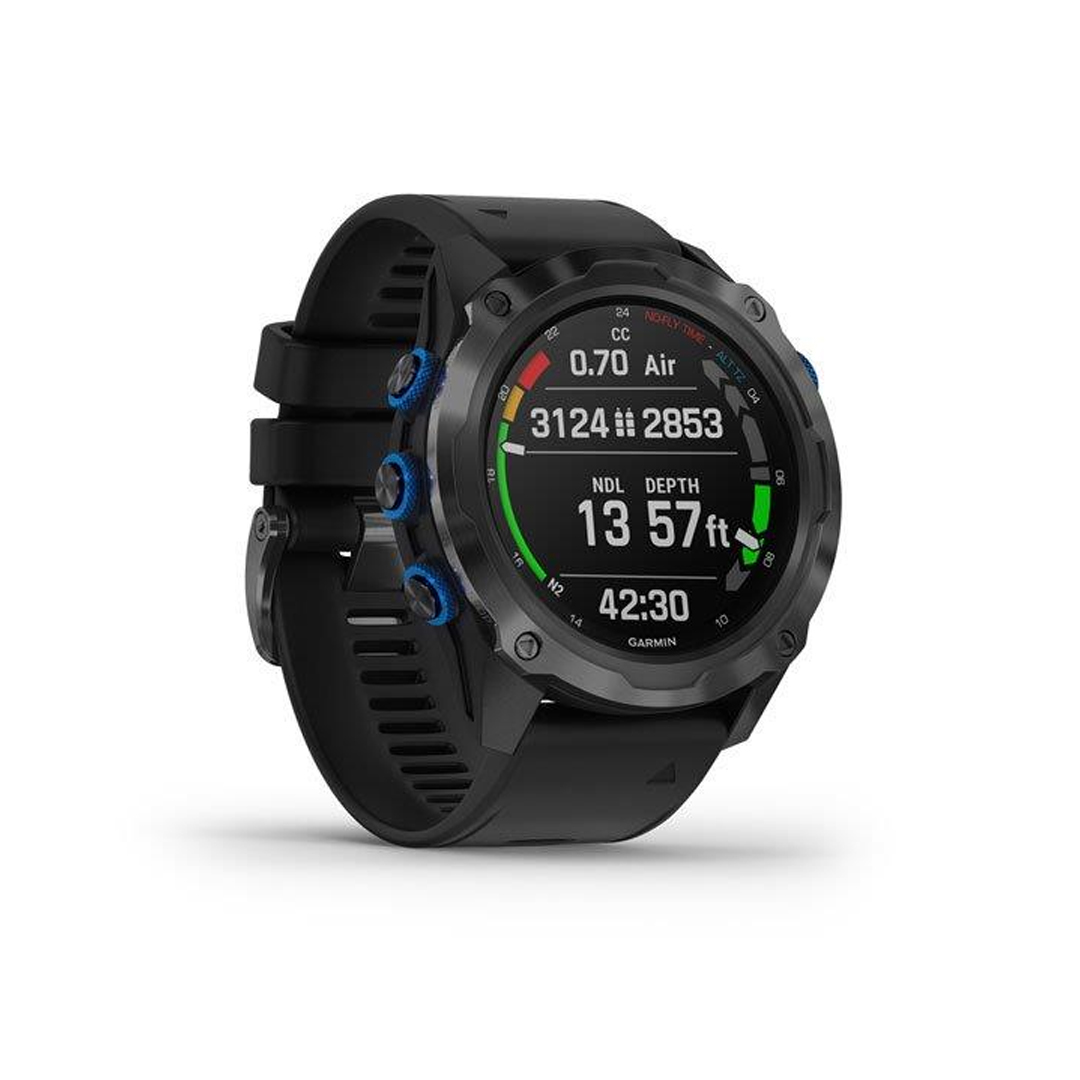 Controle su gas y su profundidad con la computadora de buceo avanzada tipo reloj que viene con entrenamiento multideporte y funciones inteligentes.