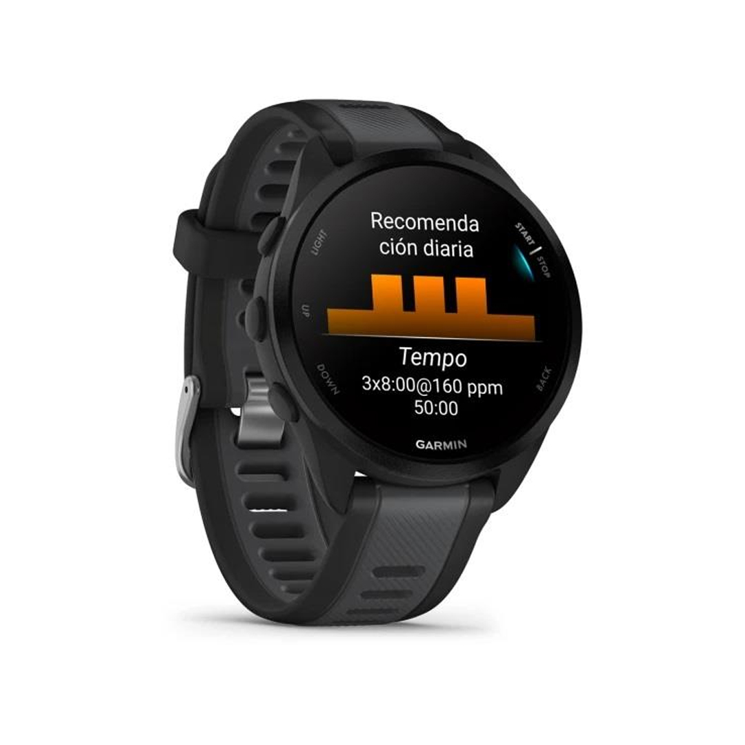 Tú ya no te limitas a correr, sino que has ido más allá. Y justo por eso es por lo que necesitas el Forerunner® 165, el reloj inteligente con GPS específico para carrera que te ayuda a alcanzar tus objetivos con planes de entreno adaptables personalizados y una pantalla luminosa que arroja luz a tu progreso.