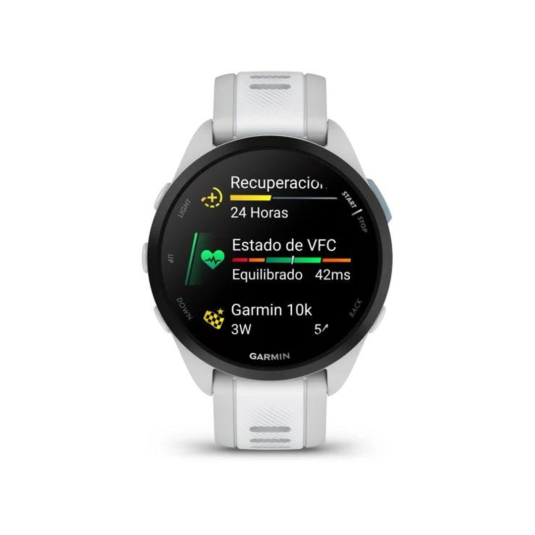 Tú ya no te limitas a correr, sino que has ido más allá. Y justo por eso es por lo que necesitas el Forerunner® 165, el reloj inteligente con GPS específico para carrera que te ayuda a alcanzar tus objetivos con planes de entreno adaptables personalizados y una pantalla luminosa que arroja luz a tu progreso.