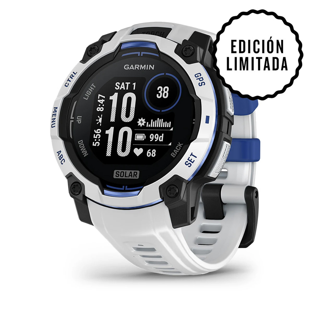 Garmin Instinct 3 45mm Solar Whitestone with Whitestone Bolt Blue Band 010-02934-03