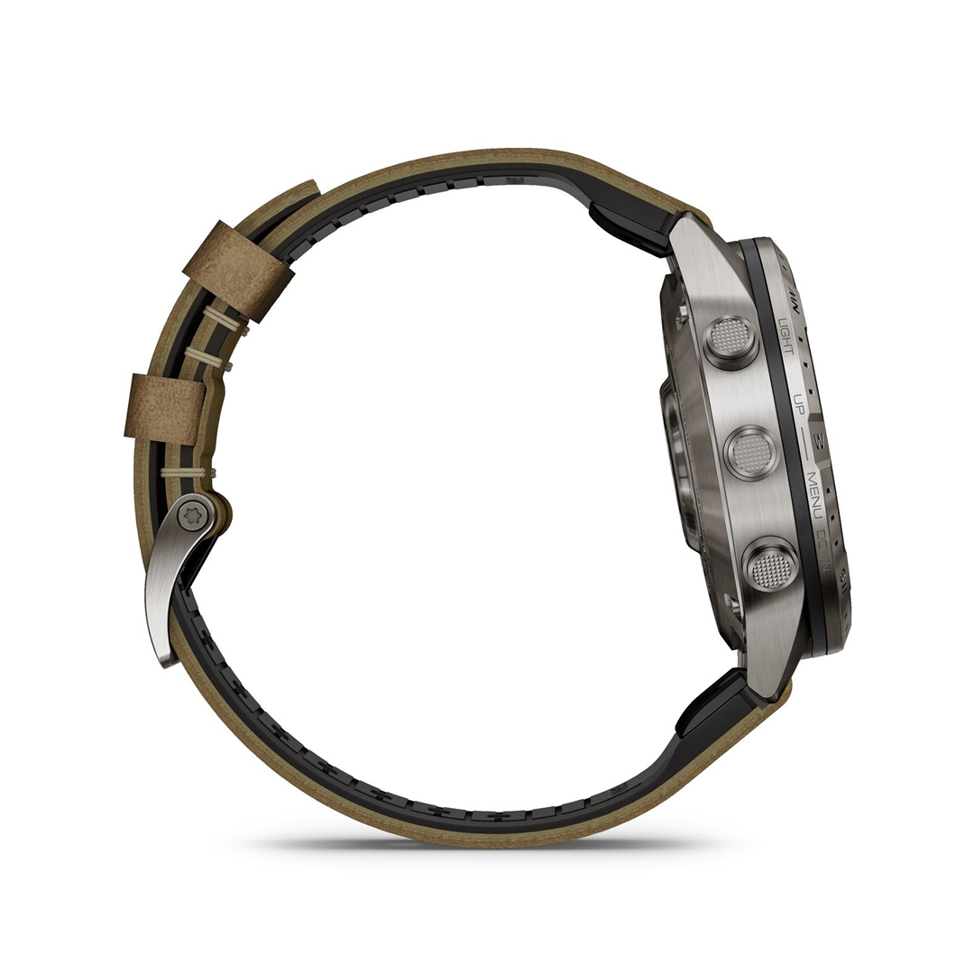 Fiel a sí mismo y ajeno al paso del tiempo. Este reloj moderno, lujoso y especializado posee una pulsera de titanio reforzada apta para vuelos de alta velocidad, una pantalla táctil AMOLED excepcional con botones de control tradicionales y una carcasa de 46 mm hecha de titanio de grado 5 que aporta una resistencia extraordinaria.