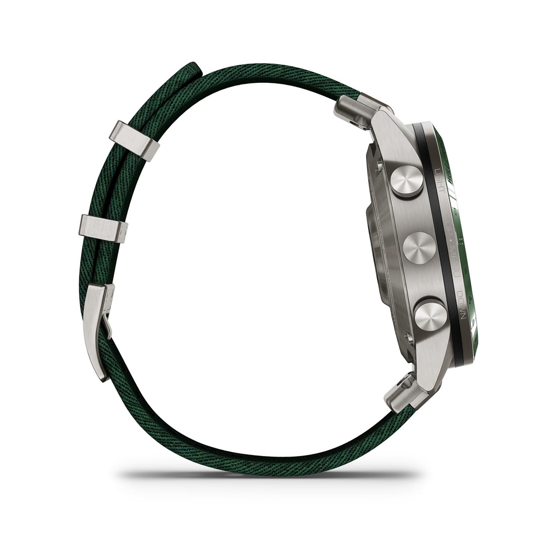 Fiel a sí mismo y ajeno al paso del tiempo. Este reloj moderno, lujoso y especializado posee una pulsera de titanio reforzada apta para vuelos de alta velocidad, una pantalla táctil AMOLED excepcional con botones de control tradicionales y una carcasa de 46 mm hecha de titanio de grado 5 que aporta una resistencia extraordinaria.