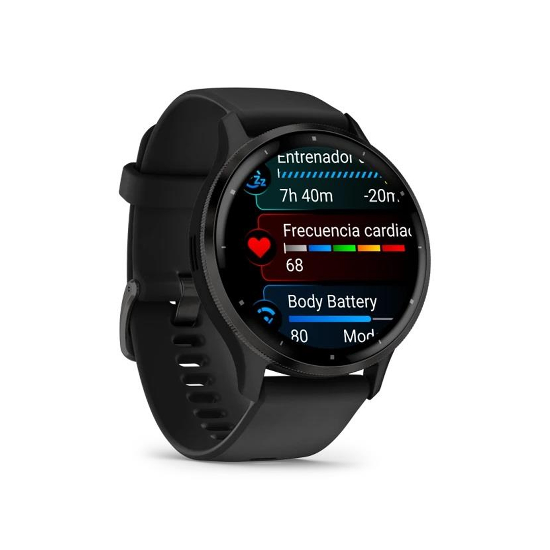 Venu 3, específicamente diseñado con funciones avanzadas de salud y ejercicio, y capacidad para hacer llamadas y enviar mensajes de texto1, es mucho más que un smartwatch: es tu entrenador personal en la muñeca que te ayudará a alcanzar tus objetivos.