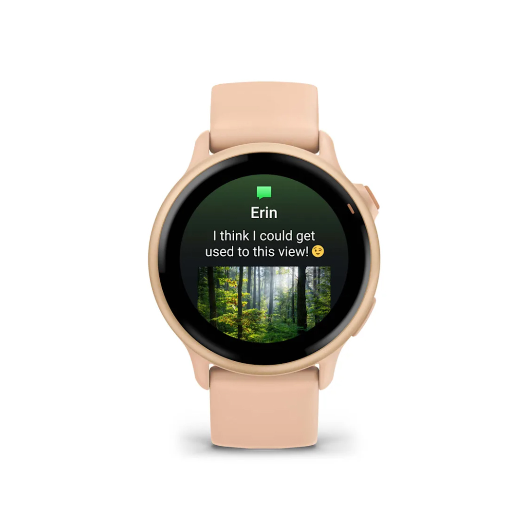 Recibí emails, mensajes de texto y alertas en tu reloj al vincularlo con tu iPhone o smartphone Android. Con un teléfono Android, respondé mensajes desde el teclado del reloj y mirá fotos enviadas directamente en la pantalla.