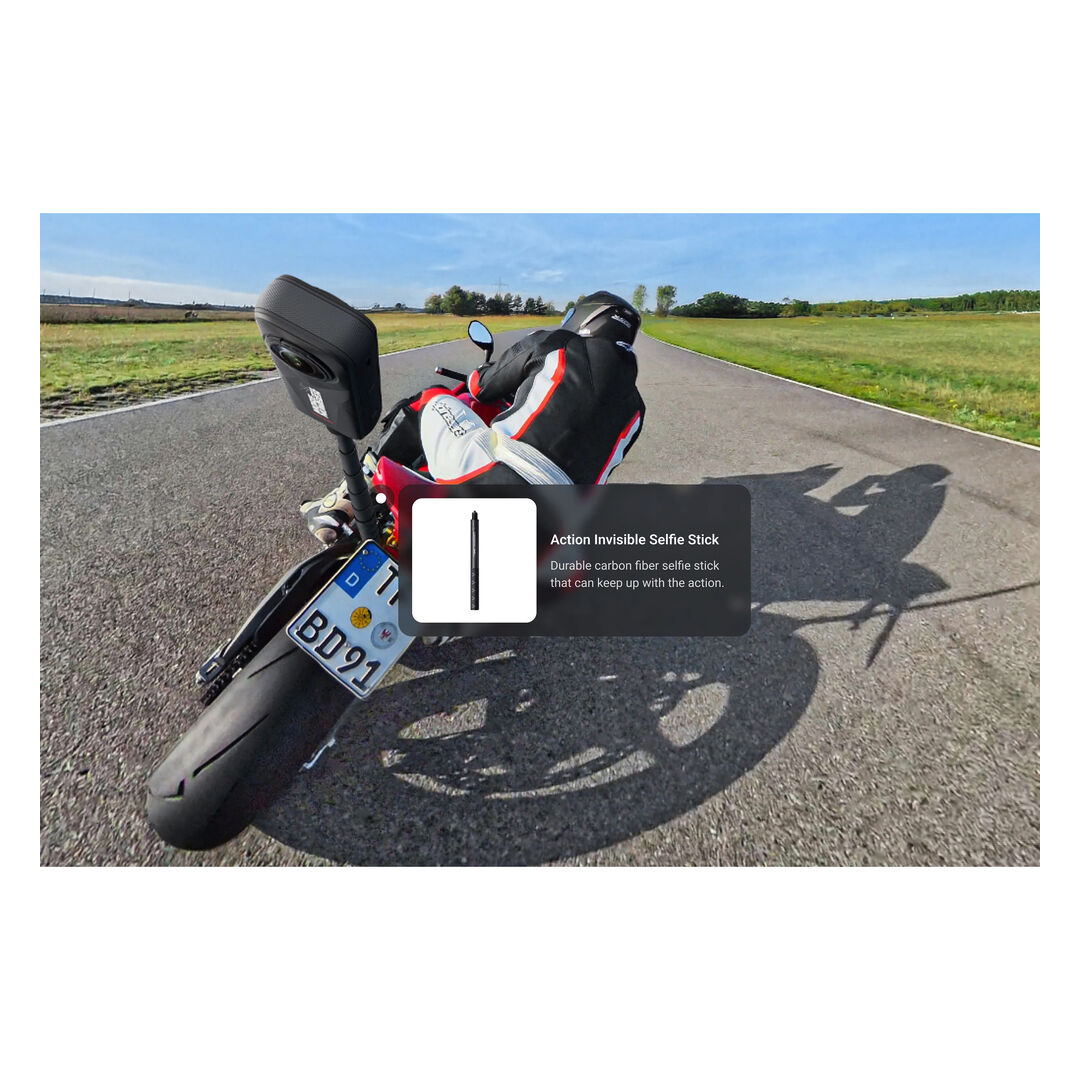 Diseñada en colaboración con el piloto de MotoGP Marc Márquez, la Insta360 X5 Cámara 360° 8K Edición Campeonato MM93 2025 graba fácilmente video 360° en 8K a 30 fps y video Active HDR en 5K a 60 fps de tus aventuras en moto.