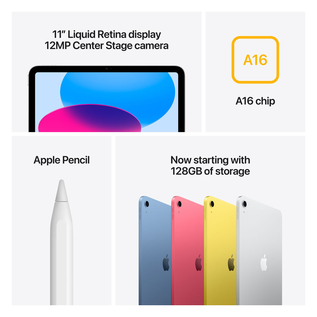 Compatible con Apple Pencil y teclado, transforma el iPad en una herramienta completa para tomar notas, dibujar, escribir y trabajar desde cualquier lugar.