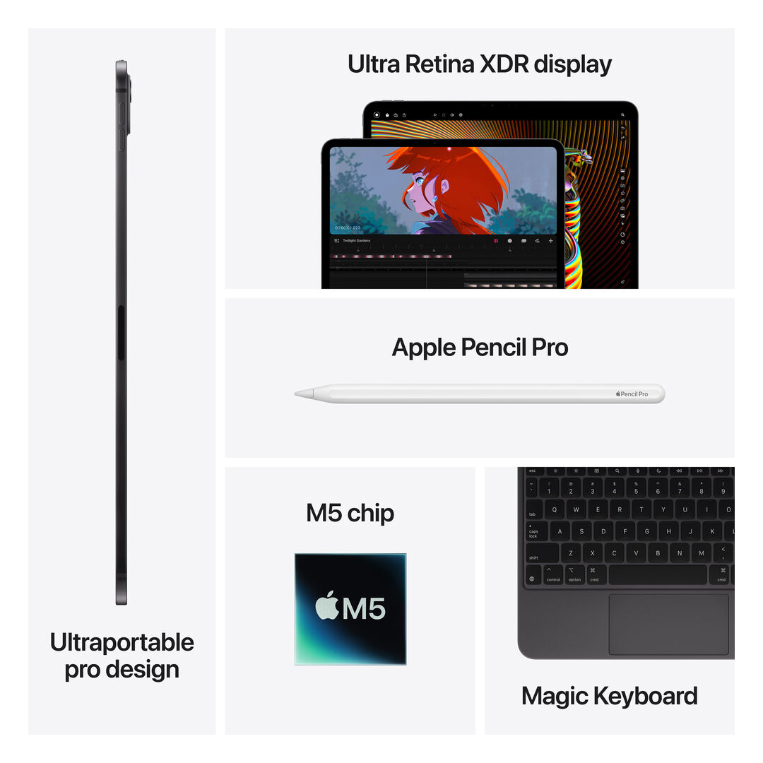 Compatible con Apple Pencil Pro y Magic Keyboard, transforma el iPad Pro en una estación de trabajo portátil para escribir, diseñar y crear.